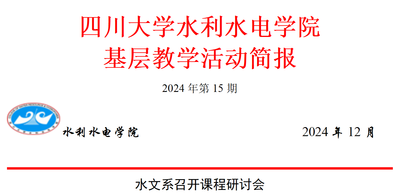 2024年12月5日上午十点,水文系在505会议室组织召开了《水环境保护》课程研讨会的教研活动。学院副院长谢红强、水文系支部书记孟玉川、水文系副主任郭立、课程组全体教师参加会议,会议由水文系主任覃光华主持。