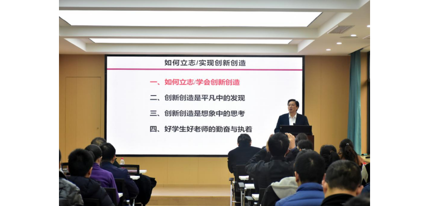 谢和平院士以《如何立志/实现创新创造》为题,以习近平总书记重要讲话精神和党的二十大报告为指引,以“真正一流体现在哪”为切入点,围绕如何立志/学会创新创造、创新创造是平凡中的发现、创新创造是想象中的思考、好学生好老师的勤奋与执着等四个方面进行了讲授。谢和平院士从人类科技文明长廊中卓越璀璨的科学家为例,鼓舞老师们用自由大胆的灵魂和耐心与执着的精神努力求真求索。他分享自己博士论文选题的经历,希望老师们在平凡中发现问题,勇于去探索科技发展最前沿。他结合团队的科研探索和自己的实践体会,向老师们分享如何在想象中思考来实现创新创造,鼓励老师们敢于在想象中思考;敢于异想天开;敢于做别人没做过的。