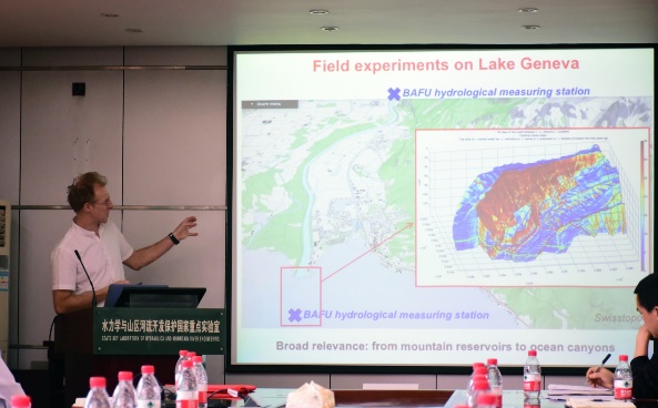 Koen Blanckaert 教授做了题为“Turbidity currents in lakes and reservoirs”的学术报告,在Koen Blanckaert 教授的报告中,他介绍了流入湖泊和水库的明渠浊流是携带氧气、热量和污染物等的载体,这些沉积物的流入会威胁水下生态环境甚至对饮用水供应和渔业养殖产生很大影响。Koen Blanckaert 教授通过野外试验,研究了罗纳河汇入日内瓦湖时所产生的浊流现象,分析了其影响机理。此外,Koen Blanckaert 教授讨论了与水文形态过程相关的一些开放问题的重要性,并展示了一些关于罗纳河流入日内瓦湖的实地测量结果和数值模拟的初步结果。