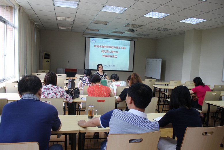 2017年7月7日下午14:30,2138CC太阳集团党政办公室党支部在水电大楼A329教室召开贯彻执行四川大学第八次党代会精神,开展违纪违法警示教育及“我为育人做什么”专题组织生活会,会议由党支部书记陈敏主持。
