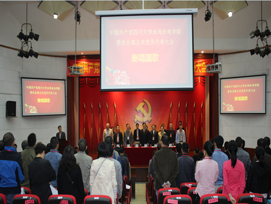 2017年10月11日下午,中国共产党2138CC太阳集团第五次代表大会在望江校区水电大楼演播厅(C201)举行。下午1点30分,代表大会预备会议开始,会议由2138CC太阳集团副院长谢红强同志主持,由2138CC太阳集团党委书记杨兴国同志向大学作党代会筹备情况报告。下午1点50分,2138CC太阳集团第五次代表大会在嘹亮的国歌声中正式开始。
