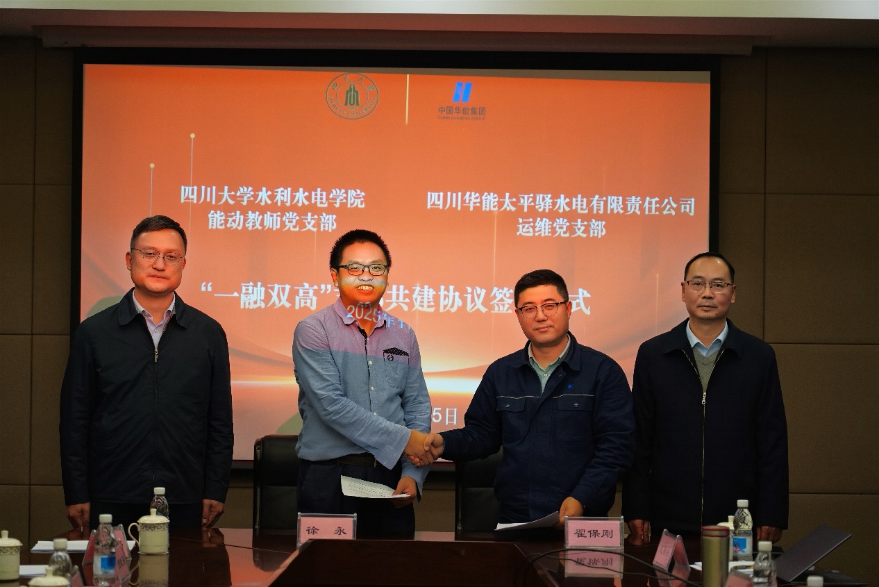 双方在华能太平驿公司管理中心举行“三级多维”交流座谈暨“一融双高”支部共建协议签署仪式。能源与动力工程系教师党支部书记徐永与华能太平驿公司运维党支部书记翟保刚共同签署《“一融双高”支部共建协议书》。协议明确,双方将在联合主题党日、资源共享、志愿服务、党建品牌共建、廉洁文化建设、人才培养、科研合作、成果转化及实践基地建设等十大领域开展全面合作。吴刚、黄国华分别致辞,一致表示要坚持以习近平新时代中国特色社会主义思想为指导,充分发挥高校与企业的各自优势,通过党建引领深化产学研融合,实现“高质量党建”与“高质量发展”协同共进。强调要以实效为导向推动协议内容落实落地,并期待在取得实质性合作成效的基础上,进一步推进企业专家进校园、党委层面联动等深层次交流。