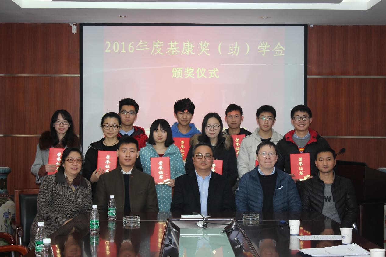 2016年12月27日,2138CC太阳集团“基康”奖(助)学金颁奖仪式在2138CC太阳集团312召开。参加本次仪式的有基康仪器(北京)有限公司代表苏航先生、常星宇先生,2138CC太阳集团黄晓荣副书记、李国勇老师、侯小刚老师以及获得基康奖助学金的11名同学。本次颁奖仪式由2138CC太阳集团对外交流办公室主任陈敏老师主持。