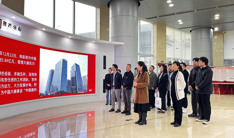 2011届校友、公司人力资源部副主任谢文洁引导学院师生参观了公司文化长廊,全面介绍了公司的发展历程、经营状况、人文精神和未来愿景。随后的交流座谈会上,马丹副书记对大唐四川公司的热情接待表示感谢,并介绍了2138CC太阳集团的历史沿革、人才培养和学科建设成就,强调双方拥有坚实的合作基础和广阔的合作前景,期待通过创新合作模式,精准对接人才需求,深化校企联动。