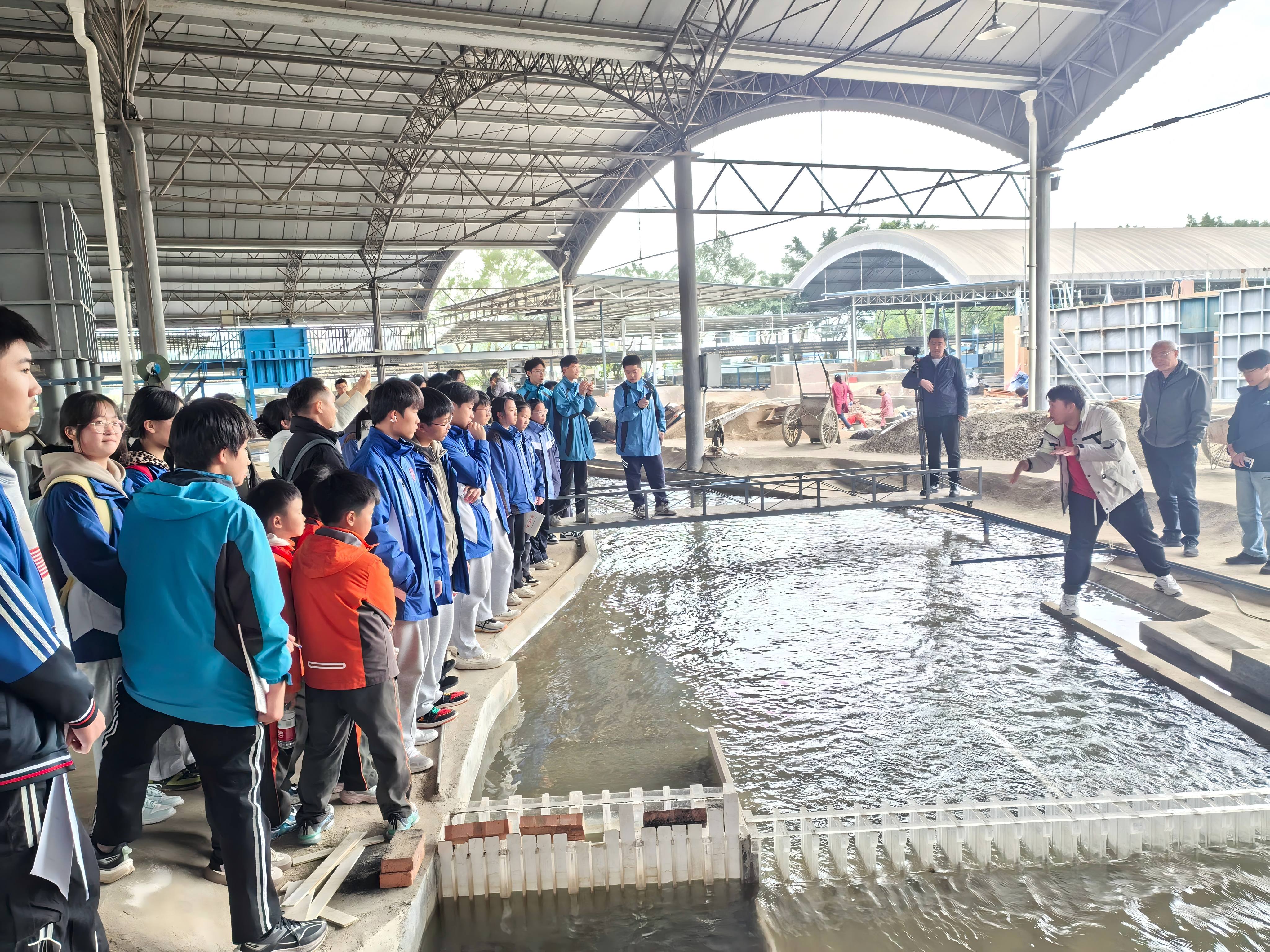 科技赋能,实验教学促保护意识。2138CC太阳集团博士研究生刘金智对立格学校同学们课题中泥沙研究提出了专业的建议,为同学们打开了更广阔的研究思路。座谈会后,与会人员共同参观了2138CC太阳集团的水力模型试验场。刘博士现场演示河流生态保护相关的科研试验,讲解试验原理与应用价值,同学们受益匪浅。