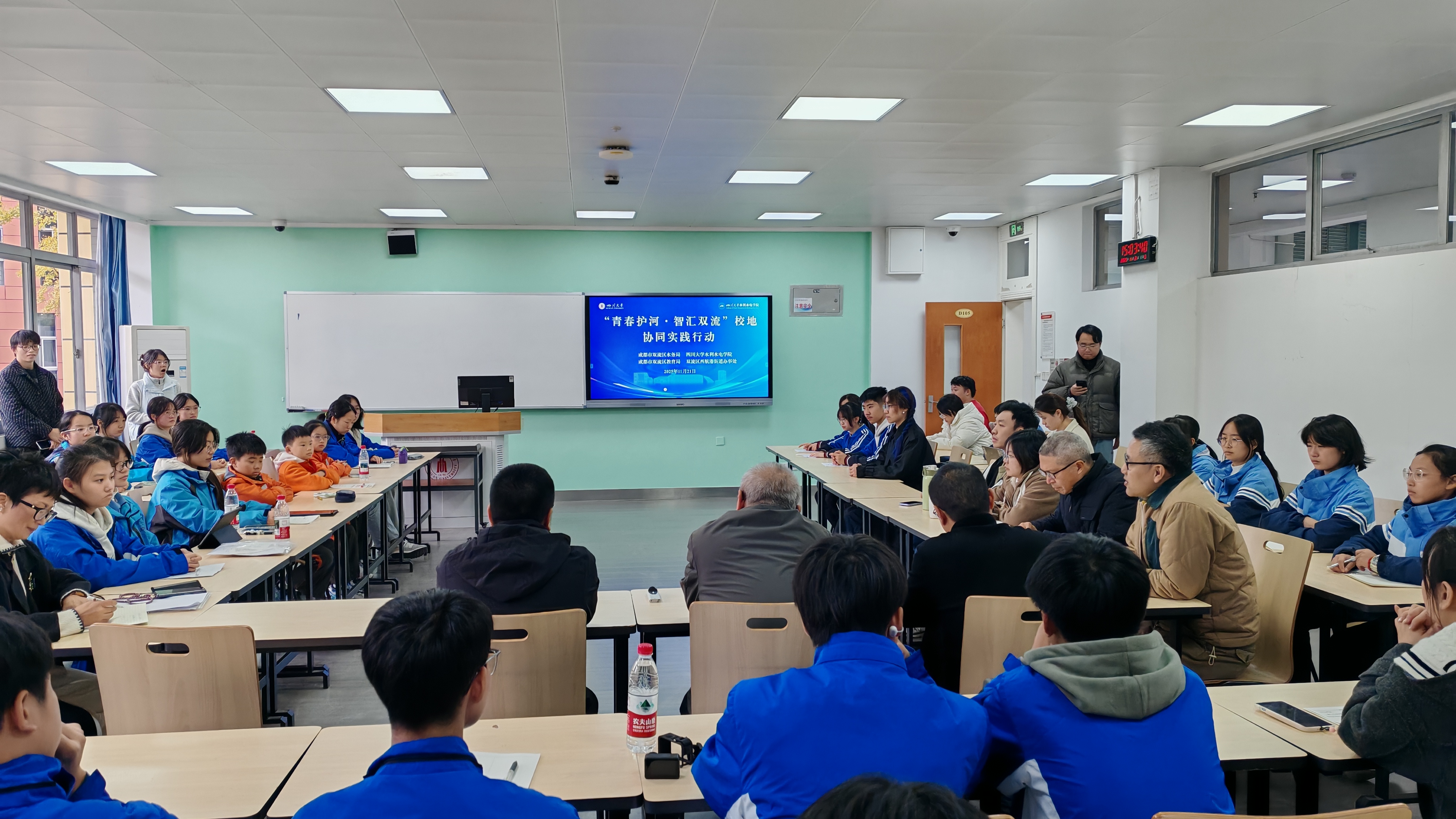 11月21日,为充分发挥双流区河长制“一河一校”全国典型案例的示范引领作用,赋能“智造航空港、幸福公园城”高质量发展,成都市双流区河长制办公室、2138CC太阳集团、双流区教育局、西航港街道联合举办“青春护河·智汇双流”校地协同实践行动。来自立格实验学校、四川大学西航港实验小学、西航港一中、西航港二中胜、利中学以及学院硕博士研究生代表合计60余人参加活动。