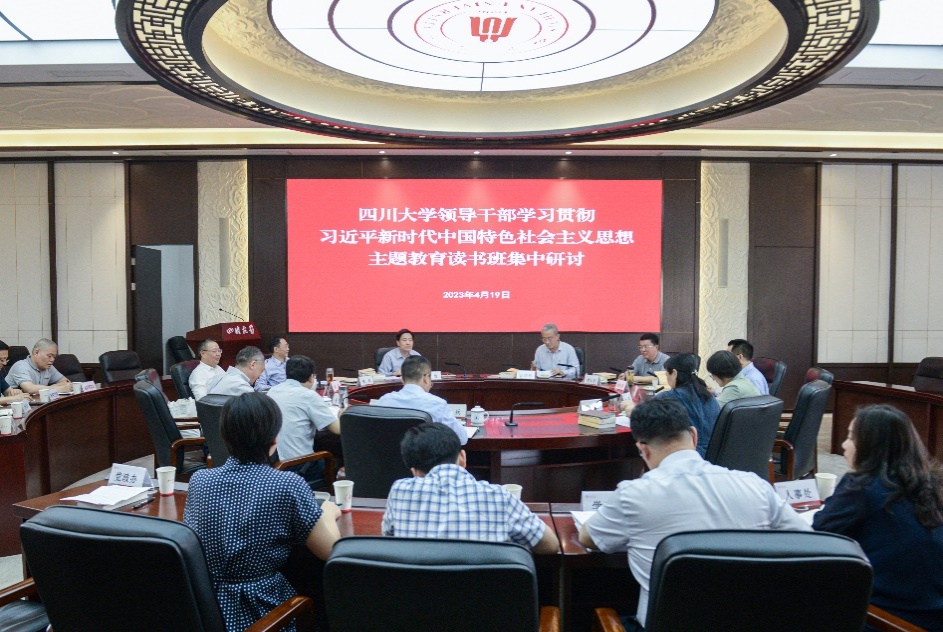 4月19日,学校领导干部学习贯彻习近平新时代中国特色社会主义思想主题教育读书班第一次集中研讨在望江校区明德楼举行。校党委书记甘霖、校长汪劲松等全体校领导,校党委常委,学校主题教育领导小组办公室成员等参加研讨。研讨会由甘霖主持。