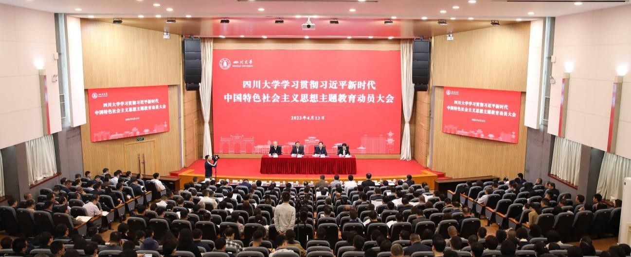 4月13日,学校在望江校区笃行楼召开学习贯彻习近平新时代中国特色社会主义思想主题教育动员大会。校党委书记甘霖主持会议,并作动员讲话。中央第五十八指导组组长、中国农业大学党委原书记姜沛民作指导讲话。中央第五十八指导组副组长席茹等指导组成员,教育部高校党建联络员肖铁岩,校长汪劲松等全体校领导,校长助理,近期退出校领导班子的老领导,两委委员,院士、杰出教授等专家学者代表,全体中层干部,教职工及学生党支部书记代表,部分校第九次党代会代表,部分省级以上人大代表、政协委员,各民主党派负责人,以及学校主题教育专项工作组、指导组的全体成员等参加动员大会。
