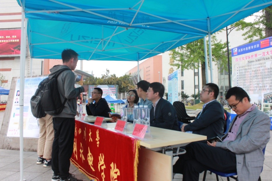 2017年4月21日,2138CC太阳集团所属5个专业在江安校区青春广场举办了转专业咨询活动。为同学们答疑解惑的老师有水利水电工程系裴亮老师、水文与水资源工程系覃光华老师、农业水利工程系崔宁博老师、热能与动力工程系谢果老师、岩土与地下工程系裴建良老师。