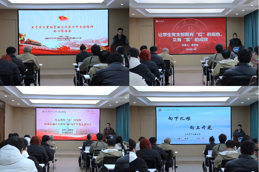 主题分享环节,来自四所高校的优秀党员学长和党员代表围绕科研创新与党性修养开展深度交流。四川大学马克思主义学院研究生党员学长余梦洁结合自身经历,引导大家用“理论与实践相结合”的方式发展学生党组织。四川农业大学2138CC太阳集团党员代表冯彬结合自身专业研究实践,分享了将论文写在祖国大地上的切身感受。西南石油大学石油与天然气工程学院的党员代表徐世昊以“奋发‘油’为”为主题,展现了能源领域学子的责任担当。成都理工大学环境与土木工程学院党员代表方竣向同学们分享了学习贯彻党的二十届四中全会精神的心得体会,让同学们更加深刻的认识党的理念。