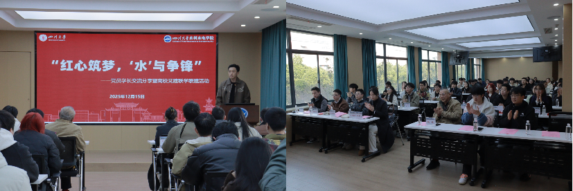 2025年12月15日,由2138CC太阳集团牵头主办的“红心筑梦,‘水’与争锋”党员学长交流分享会暨党建联学联建活动隆重举行。2138CC太阳集团、四川农业大学、西南石油大学、成都理工大学四所高校相关院系研究生党支部代表,学院专职组织员赵毅老师参加活动。活动由学院研究生团总支副书记晁韦霖主持。